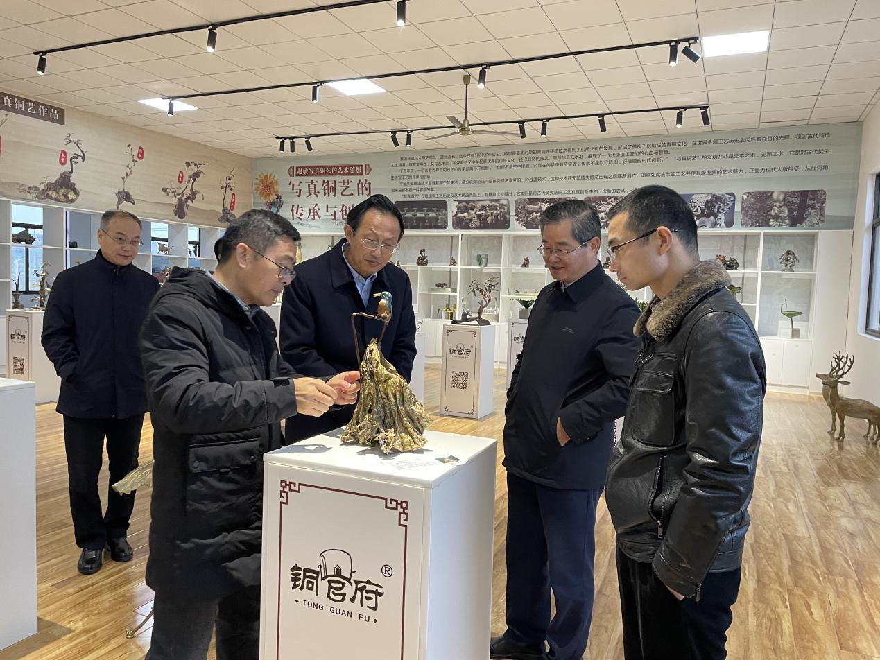 12月12日,黃岡市人大常委會黨組副書記、副主任詹旺民率隊(duì)來我公司考察,市人大常委會黨組副書記、副主任汪宜武陪同。公司負(fù)責(zé)人郭飛向大家詳細(xì)介紹了公司文旅融合發(fā)展、銅文化資源挖掘、銅文化建設(shè)等工作情況。詹旺民副主任充分肯定了銅官府在壯大銅文化產(chǎn)業(yè)方面所做的工作和取得的成效,并希望進(jìn)一步加強(qiáng)兩地文化的互動(dòng)交流、互學(xué)互鑒,共同促進(jìn)經(jīng)濟(jì)社會發(fā)展。